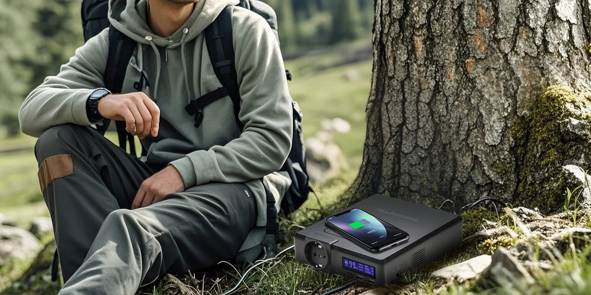 - 3 Lademöglichkeiten (USB-C+AC+Solar);