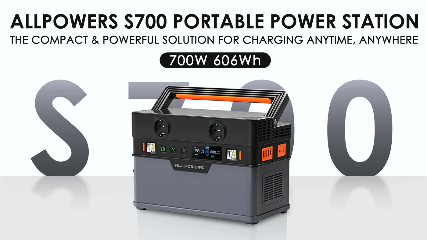 S700 Portable power station features 2x Pure Sine Wave AC outputs (110V 700W, 1400W Peak), 3 x USB-A ports, 1x PD 100W USB-C outport, 1 x Regulated car port, 2 x DC ports. Connecting via Bluetooth without internet, ALLPOWERS APP making operation easy stable. Allows you remote control it via your phone whenever and wherever. Vintage backup battery for your outdoor adventures, camping, road-trip, RV and home use.