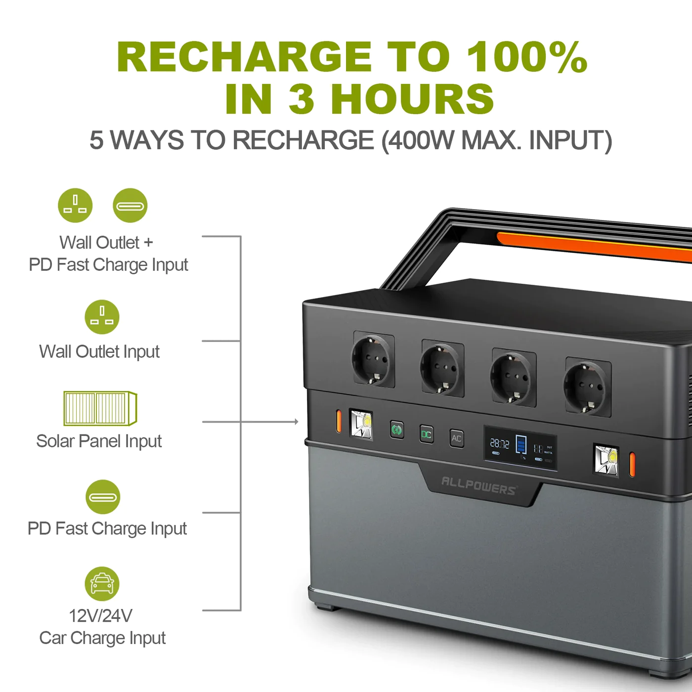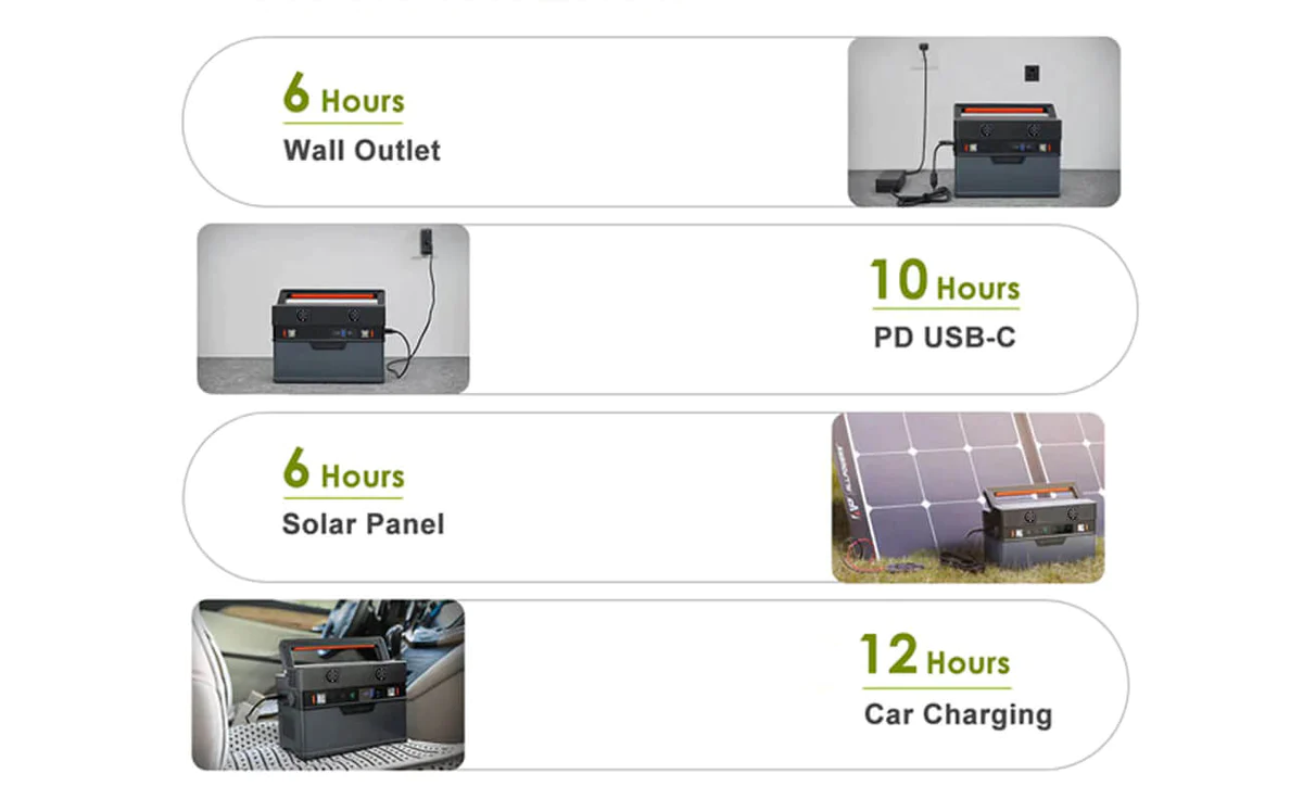 - 6 Ways to Recharge(AC/USB-C/AC+USB-C/Solar/Car/Solar+USB-C);