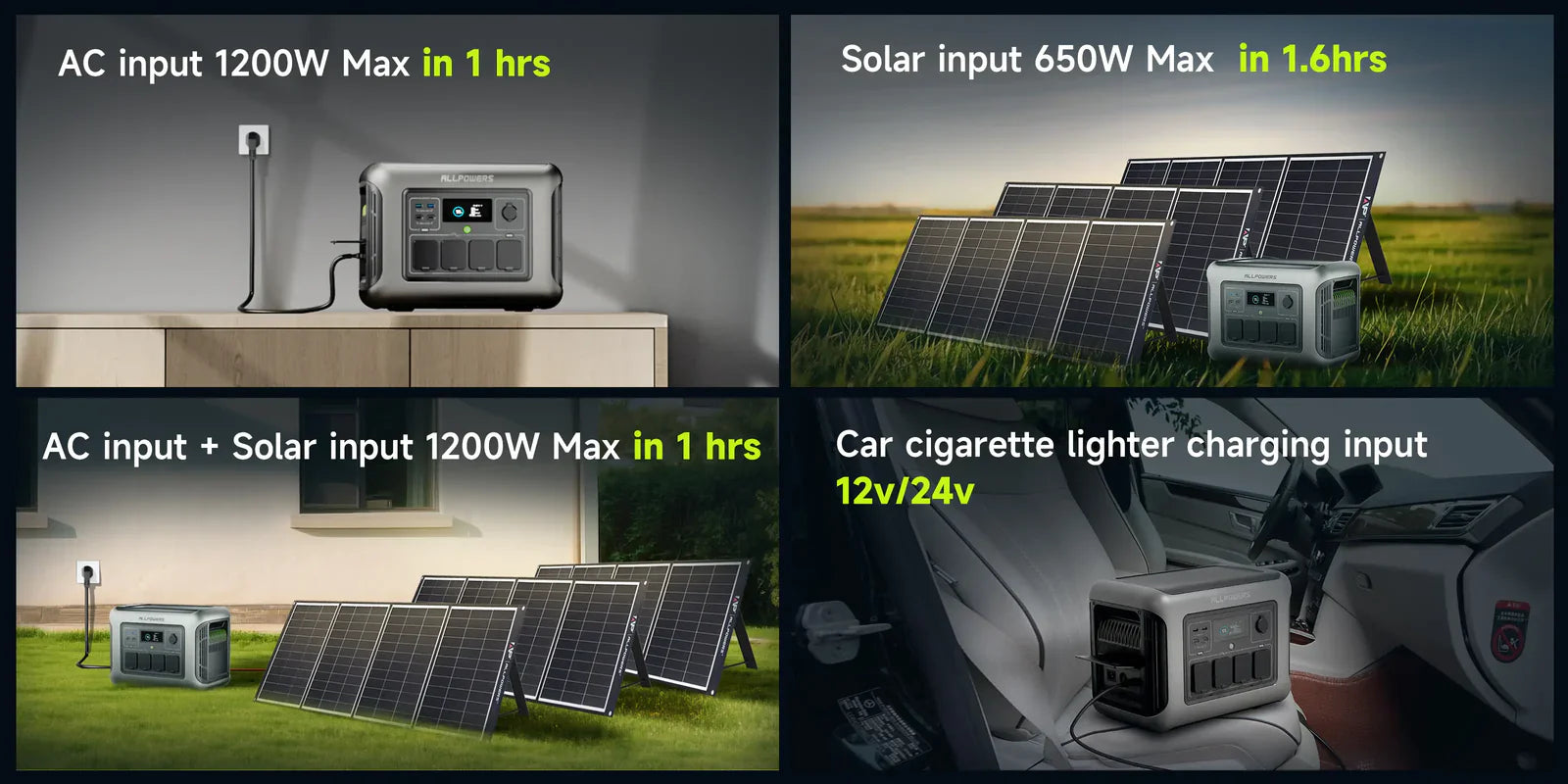 - 4 Lademöglichkeiten (AC/Solar/Auto/Doppel-AC+Solar);