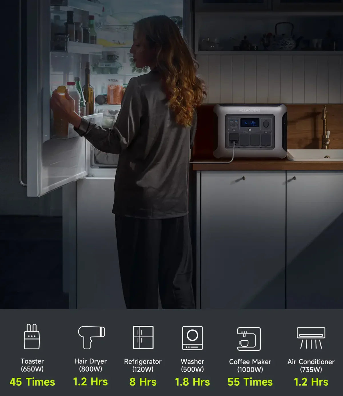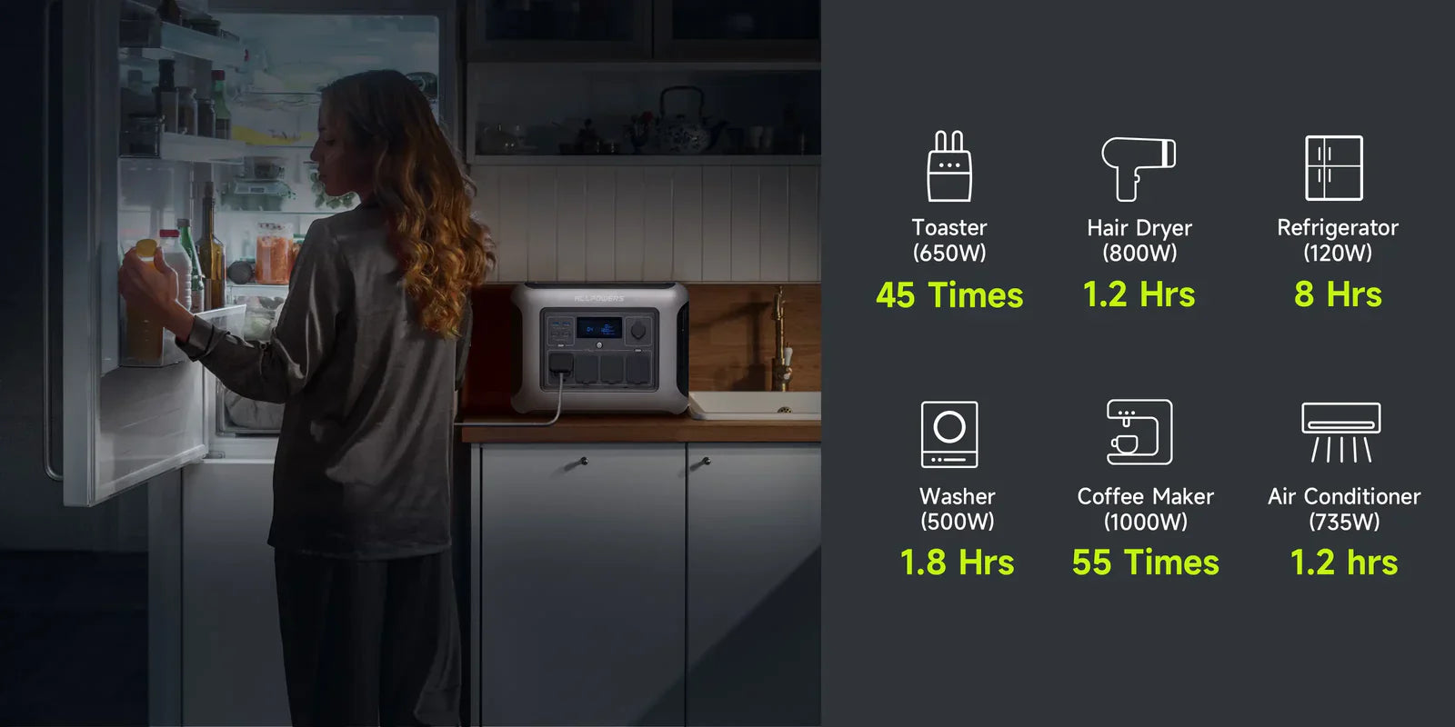 Erleben Sie unvergleichliche Leistung mit seiner massiven 1056Wh-Kapazität und einer leistungsstarken AC-Ausgangsleistung von 1600W (3200W Spitze). Diese leistungsstarke Powerstation ist bereit, zuverlässige Notstromversorgung für Ihr Zuhause bereitzustellen. Ob in einer stürmischen Nacht oder bei geplanter Wartung, das R1500 LITE hat alles, was Sie brauchen. Halten Sie die Lichter an, Ihre Geräte arbeiten und Ihre Geräte laden.