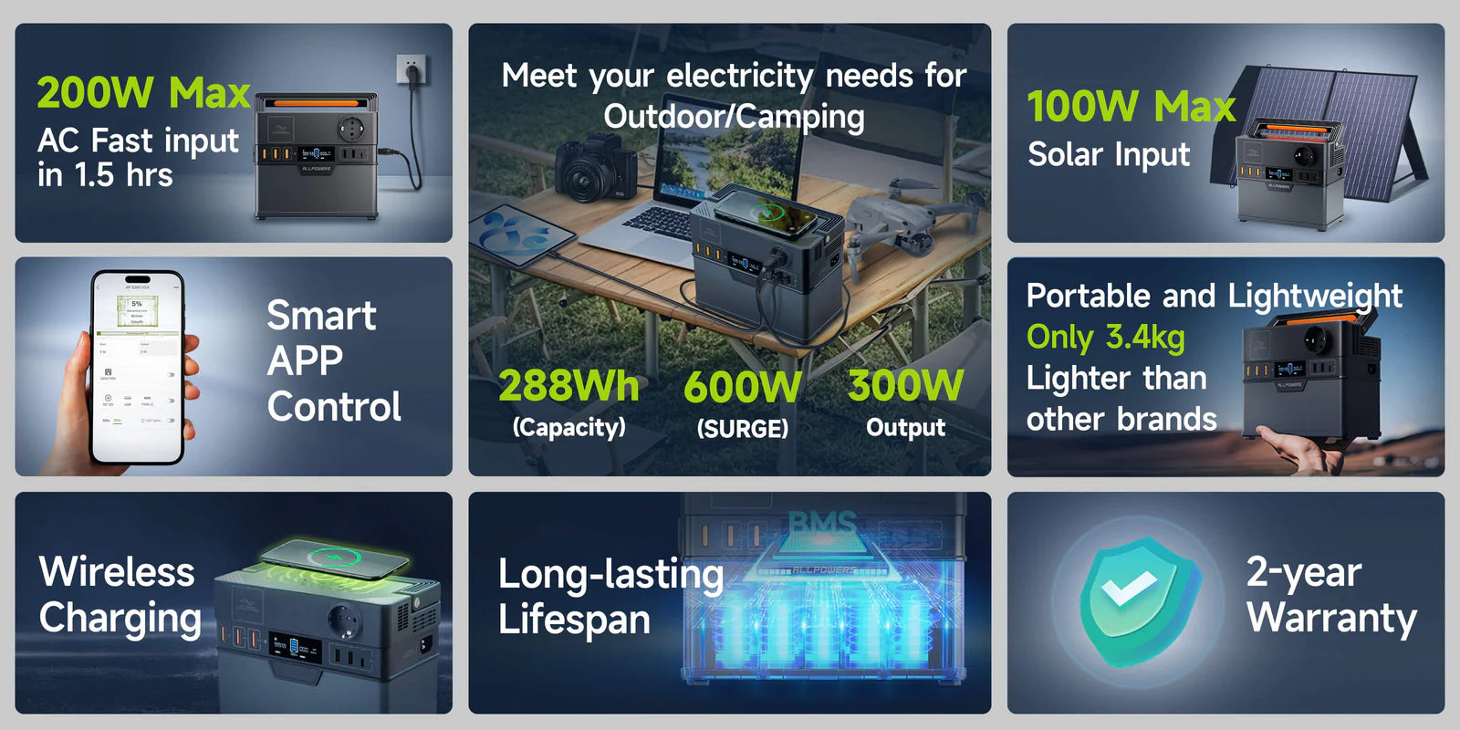 - 4 Ways to Recharge (AC/USB-C/Solar/Car/AC+Solar);