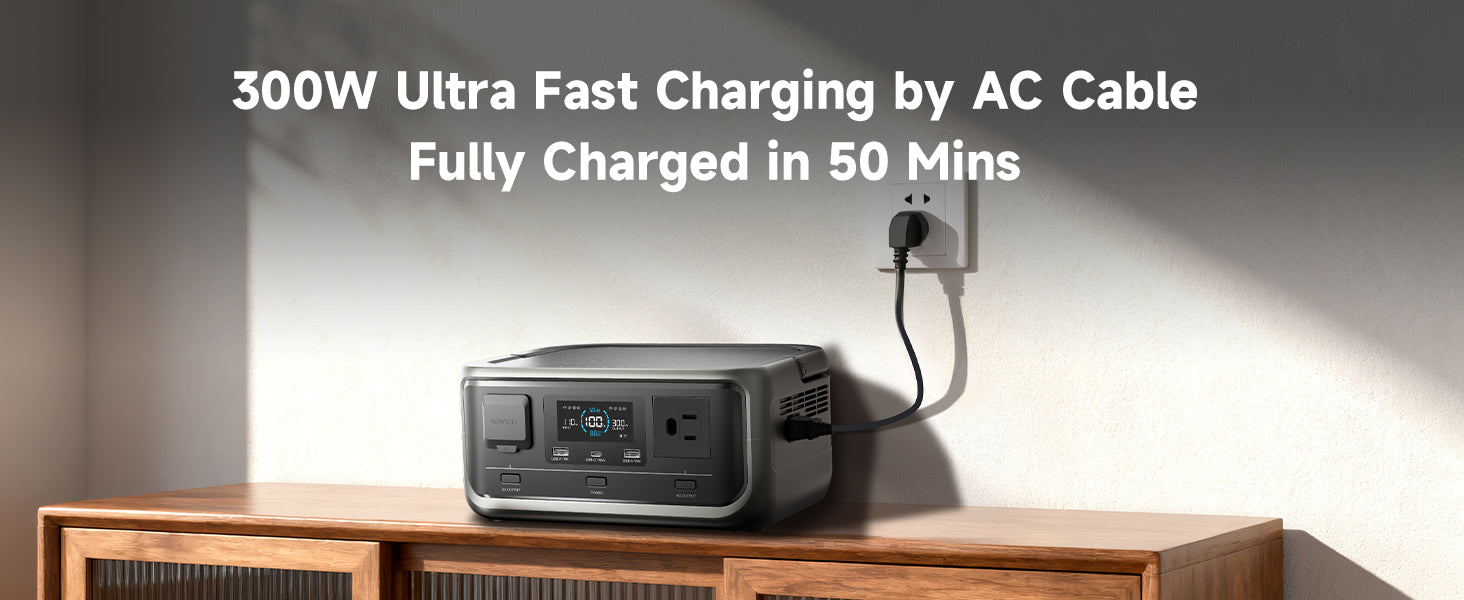Nie czekaj godzinami! Dzięki wejściu AC 300W, nasza przenośna elektrownia ładuje się w zaledwie 50 minut. Idealne, gdy potrzebujesz szybkiego doładowania przed wyjściem z domu. Szybko ładowana stacja zasilania to gwarancja gotowości.