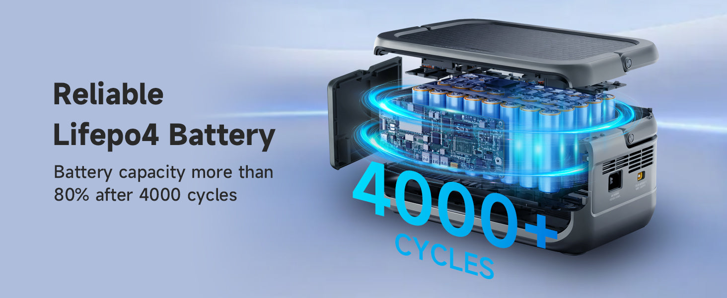 Wyposażona w trwałą baterię LiFePO4, nasza stacja zasilania wytrzymuje ponad 4000 cykli ładowania, zachowując ponad 80% pojemności. Inwestycja, która posłuży Ci przez lata, na każdej wyprawie i w domu.